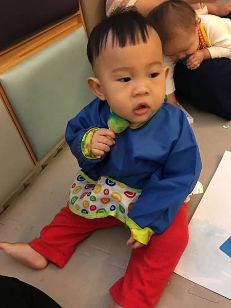 過程中,寶寶會用雙手摸摸板子、摸摸海綿棒、摸摸水彩,這是一個畫畫衣穿好穿滿媽媽才不會昏倒的勞作😆
