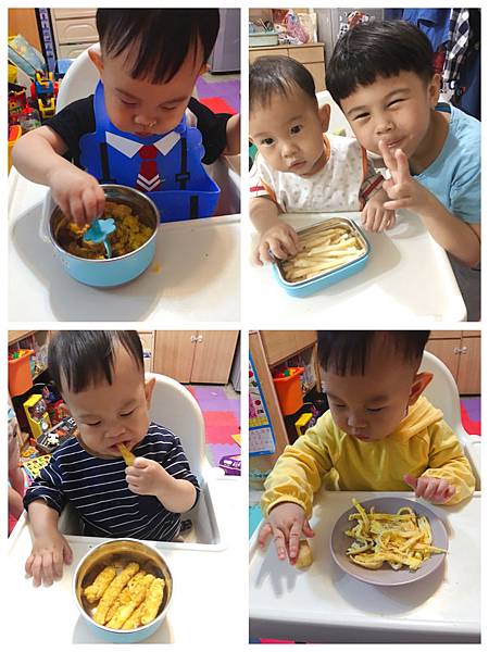默默的到了1歲後,才正式放手讓小可樂自己吃