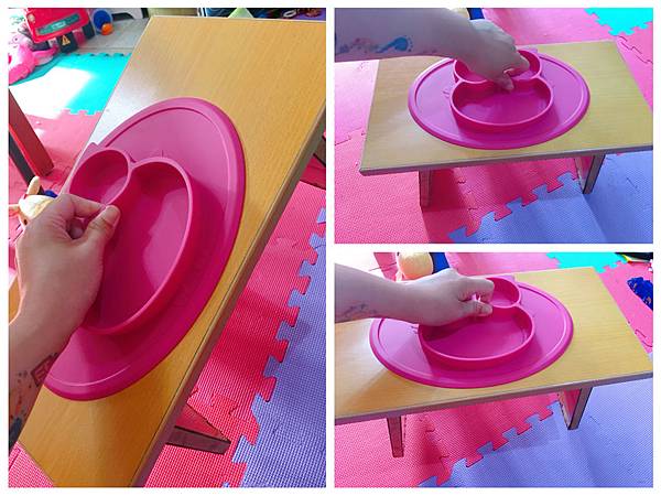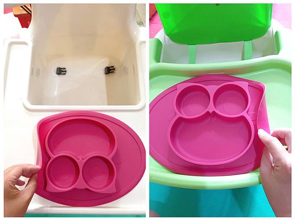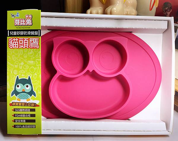 後來剛好體驗到了「YEP2芽比兔」的「貓頭鷹造型矽膠防滑餐盤」桃紅 / 水藍 / 葉綠