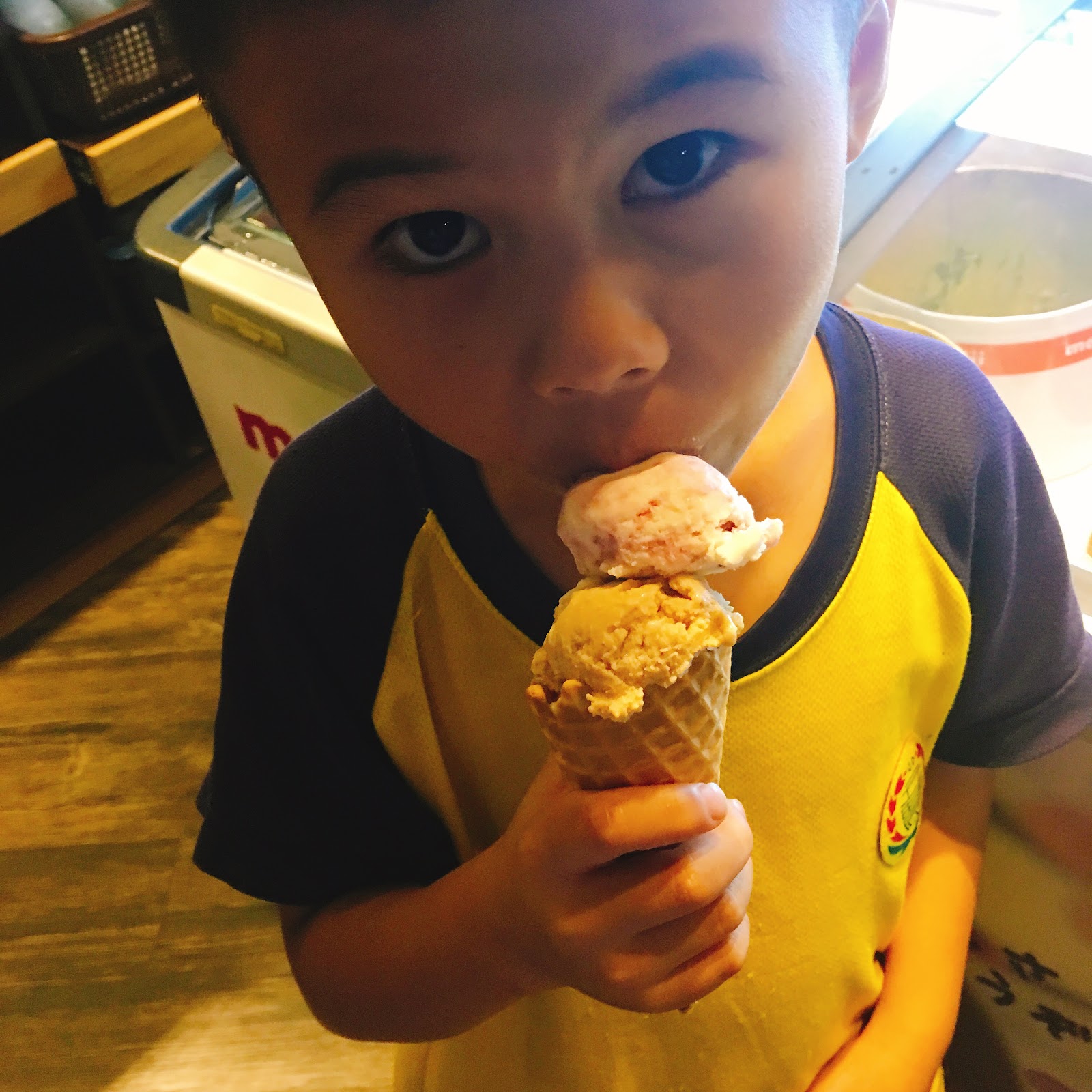 還有明治冰淇淋,肉圓哥哥一看到就吵著要吃,但媽媽要求要吃完正餐才能吃一點點冰!🍦