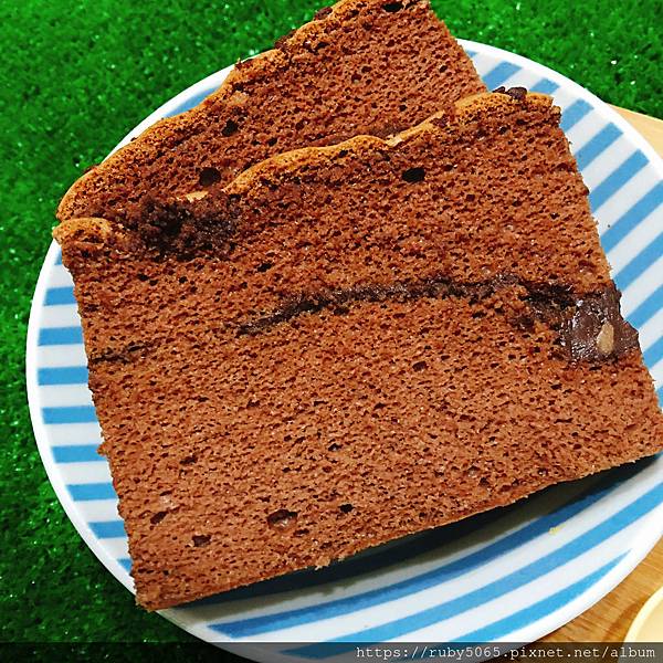蛋糕體綿密有著巧克力甜甜味,內層巧克力餡讓整體增添多層次口感,苦甜香濃在嘴裡環繞
