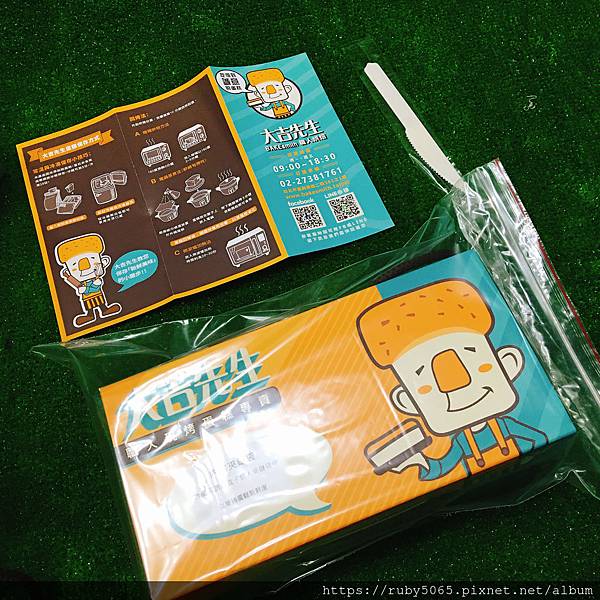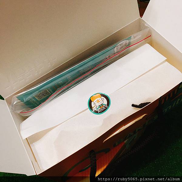 蛋糕有用蛋糕紙包好,貼上可愛的LOGO貼紙,盒內有一個夾鏈袋內有保存蛋糕的貼心說明及刀子,