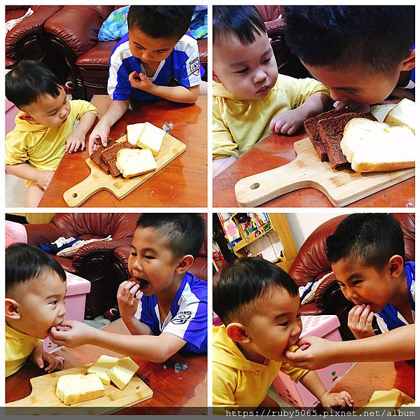 BAKEsmith 大吉先生·職人烘焙的戚風蛋糕不吝嗇的使用好的食材,有著用心誠意的美味,好吃話不用多說看看兩兄弟相親相愛的一起乖乖吃著下午茶,哥哥吃在嘴裡還不時餵弟弟吃,弟弟還張大了口給哥哥餵食,這畫面媽媽看在眼裡好開心。