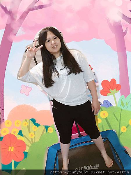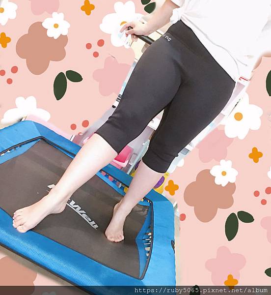 這次穿著 Soft Snug 褲的産品七分褲加上居家彈跳床,在家運動更便利了。