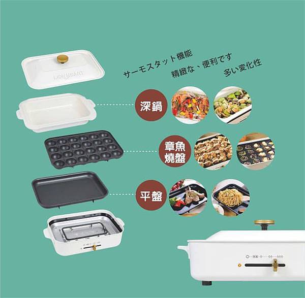 ✅ 一機多用途,內附(章魚燒盤)(平盤)(深鍋),方便料理。