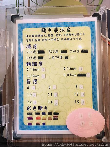 也會依照本身睫毛翹度以及有無配戴眼鏡來推薦適合你的捲度、粗細度、長度,還可以選不同的顏色呢!!