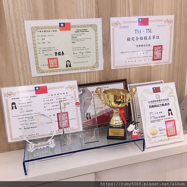 ▼櫃檯後方有許多的獎牌、獎盃、證照及合格證書