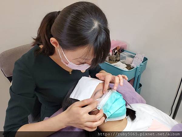 ▼結束後美睫師也會在說明接睫毛後的清潔保養及注意事項