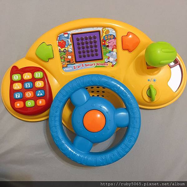 方向盤,加速器,電話按鍵,喇叭等好玩的玩具,讓寶寶玩的不亦樂乎。