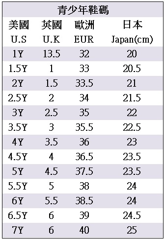 青少年 鞋碼
