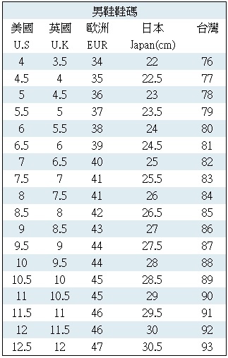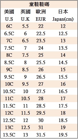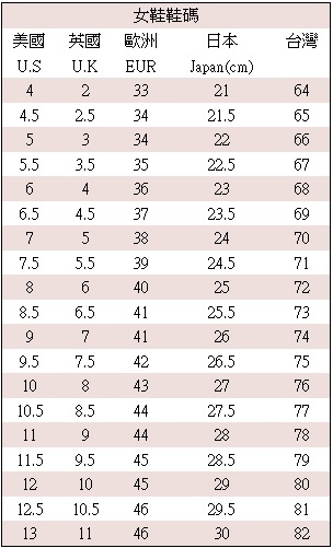買鞋不清楚請先看看對照表喔!!