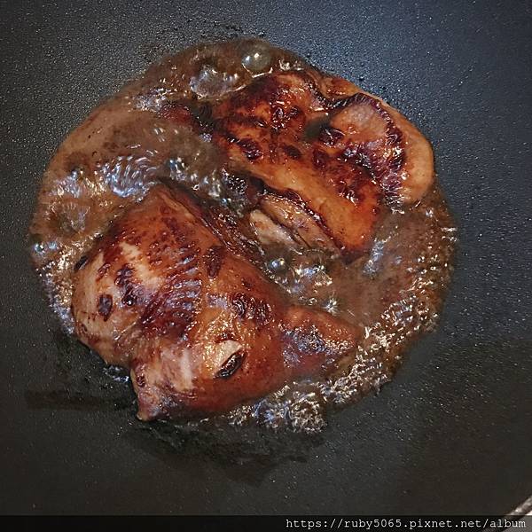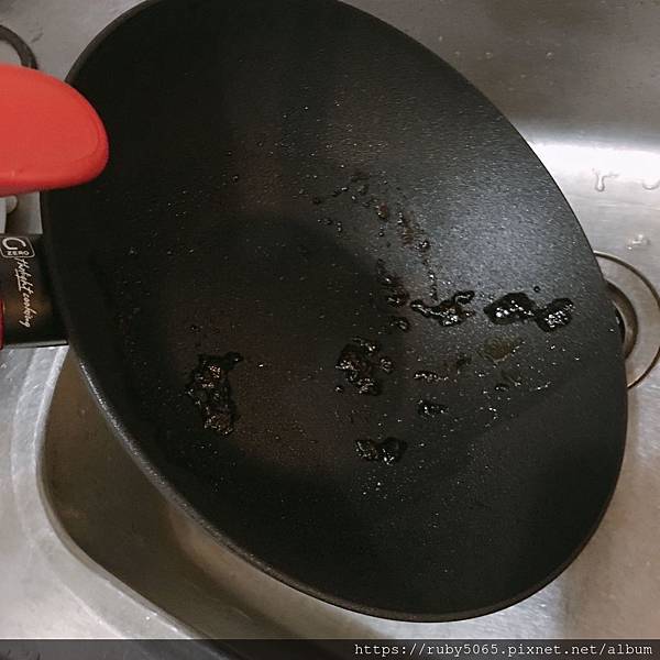 料理蜜汁雞腿排時,因為要收汁,鍋子邊緣一定會有一層焦焦痕跡,因為它不沾的特性,輕輕一洗就乾淨溜溜~太方便拉~