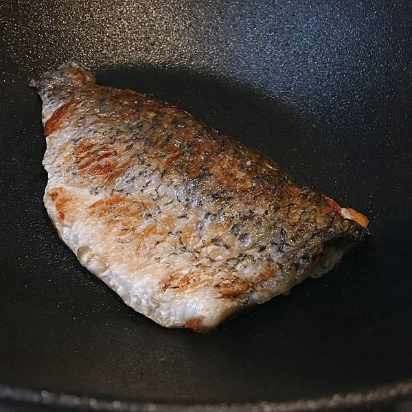 煎魚也很方便!!鍋鏟直接鏟起來,完全沒黏底,魚皮美美的 完美
