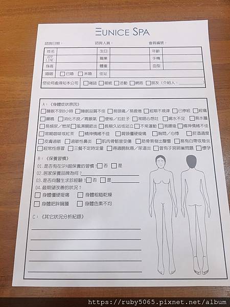 首先會請你填寫一些個人資料也能讓美容師能夠了解你目前的身體狀況