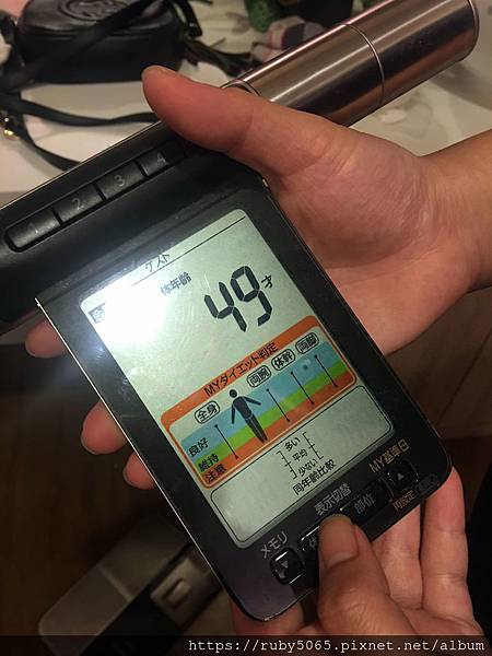 沐浴完後,美容師會進來測量 體重、體脂、骨骼、身體年齡..等數據