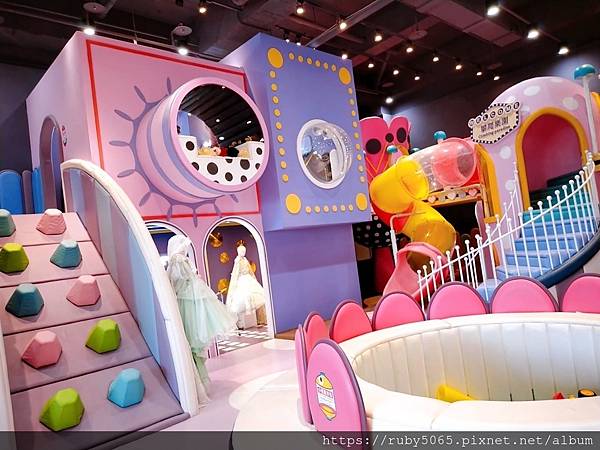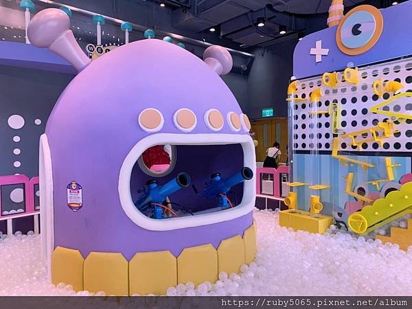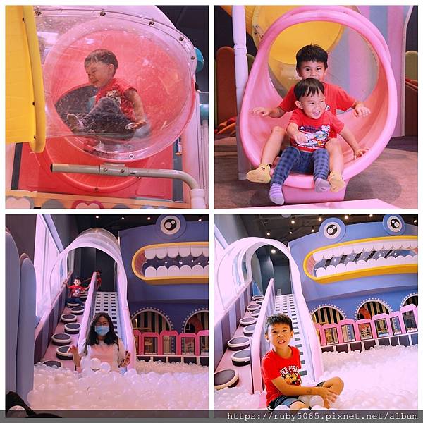 Kid’s建築樂園 - 怪獸學院體驗館,園區雖不大但孩子們可以玩上一整天沒問題,以為只有女孩們可以玩得很盡興嗎?NONO~球池互動及攀爬區也非常夠難孩子們玩耍,放完電後就是大人們的逛街時間拉~肚子餓了美食廣場也可以吃飽飽喔!!