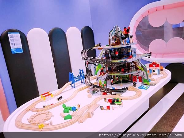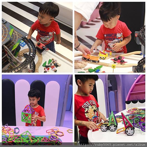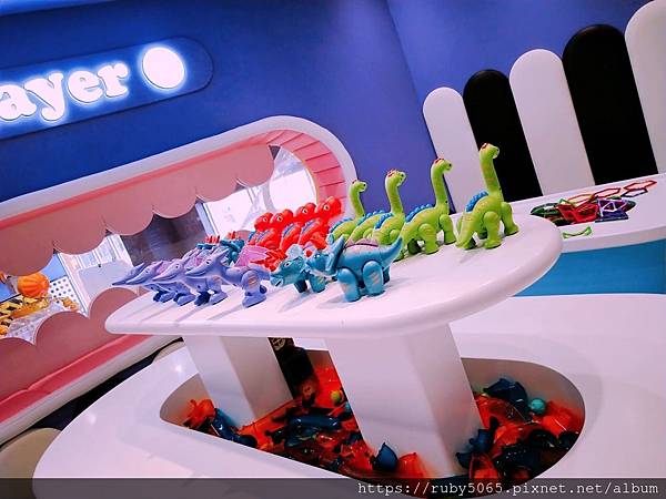 小遊戲益智區立體軌道車組、小恐龍模型、磁力積木,也都不錯玩