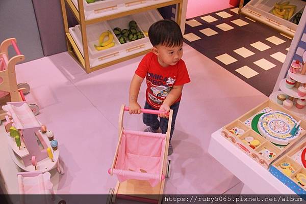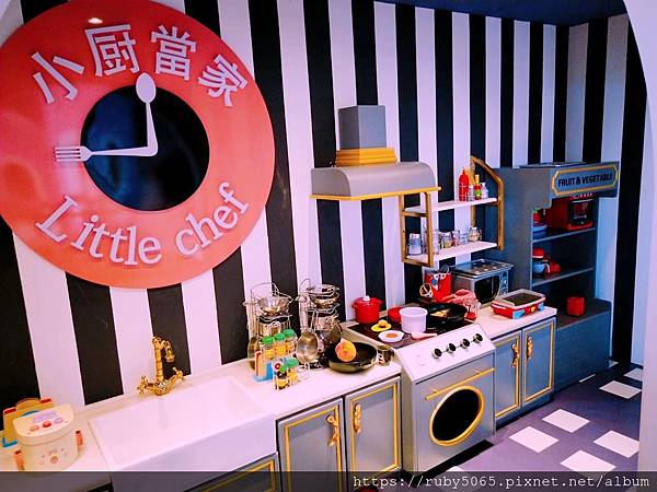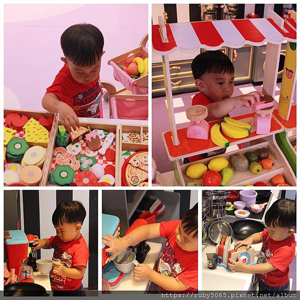 小可樂超級愛玩家家酒遊戲,到了這區完全的瘋狂!每一樣都想摸一摸玩一玩的,小小廚師非他莫屬了!
