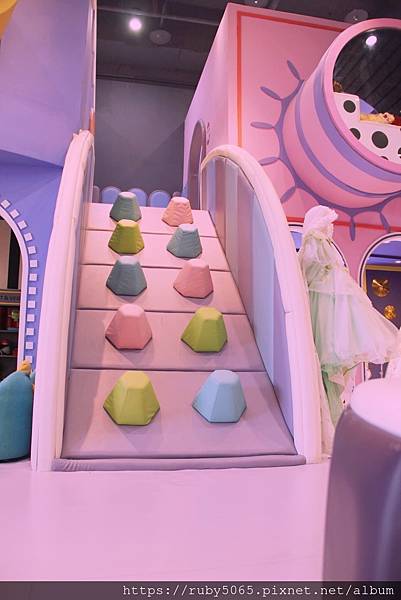 抱石斜坡區,可通往二樓的美妝髮廊、小遊戲益智區、攀爬區