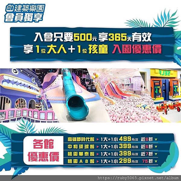 7月活動內容:7/1-7/31加入會員享一年超值優惠「1兒童+1大人」$399