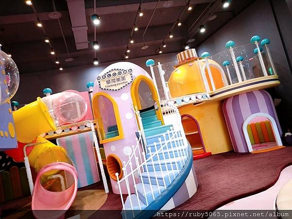 旋轉溜滑梯、滑梯通道 肉圓可樂也玩得不亦樂乎