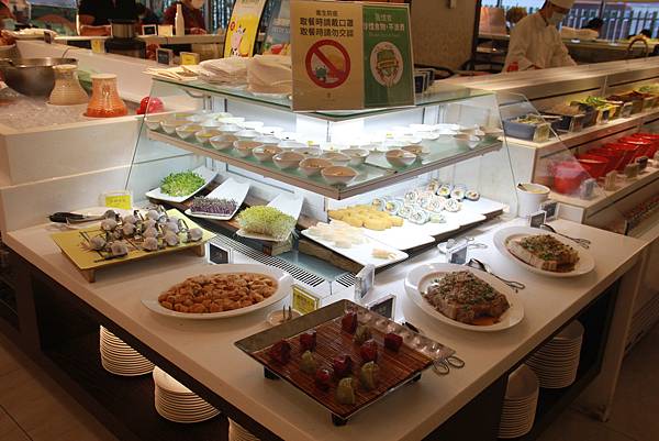 入座後就可以自由取餐囉!! 桌上會放一個牌子,用餐中&吃飽了