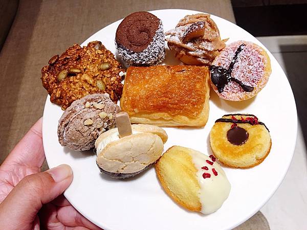 琳瑯滿目的甜點,黑糖燕麥餅、榛果貝殼酥餅、瑪德蓮、達克瓦滋、巧克力棒棒糖