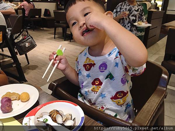 除了擔仔麵以外還有鮮蛤蠣湯,蛤蠣也超新鮮,我們邊吃飯小可樂也自己乖乖的吃了好多蛤蠣,