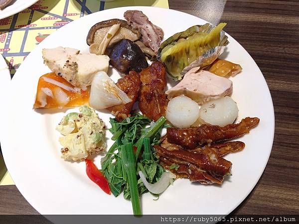 肉圓可樂爸一次就拿了烤鴨、熱食、湯品 全配,哈哈