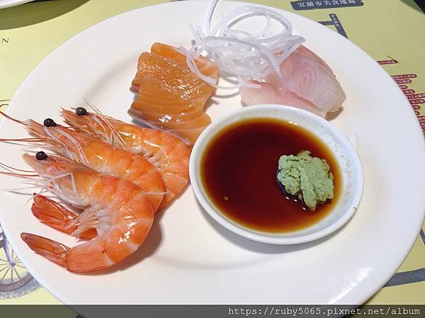 生魚片的新鮮是經過肉圓可樂爸那挑嘴的掛保證,這次也是肉圓哥第一次嘗試吃生魚片。