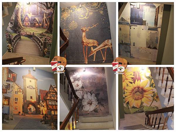 樓梯間也暗藏玄機,每一層樓的圖畫都互映交誼廳與藝術牆的主題!!