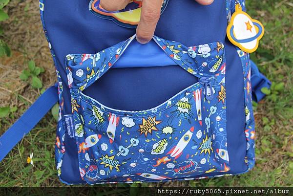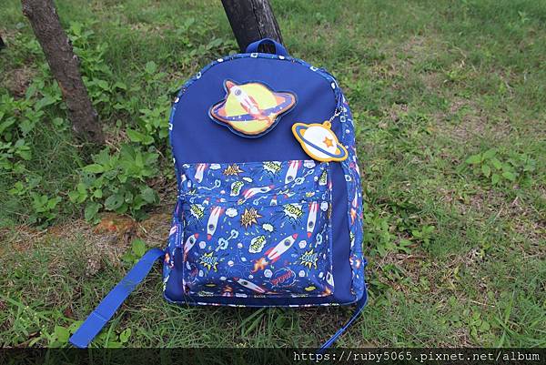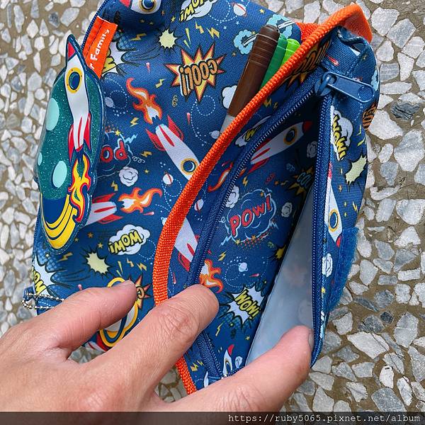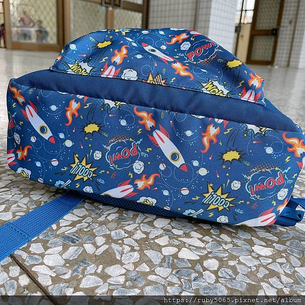 繽紛的造型就先吸引目光了!滿版的火箭🚀圖案,讓孩子更樂於背著出門(而不是叫爸媽幫忙拿書包![]()