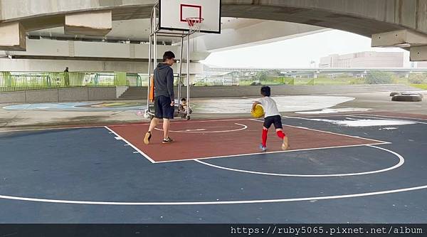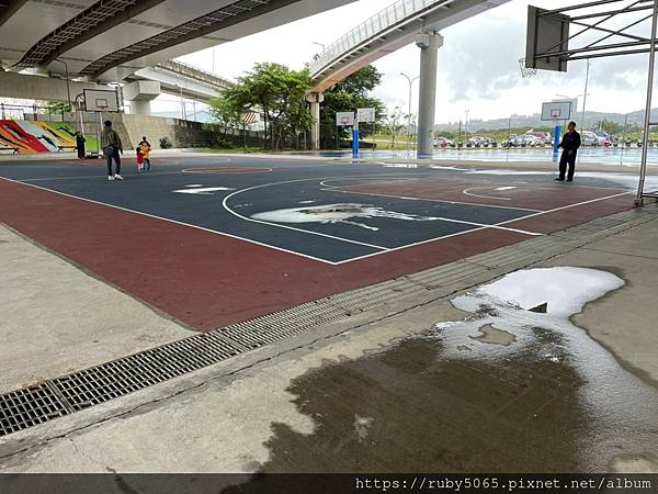 剛好在社子大橋下有個全場的籃球場,大太陽、下雨都不影響運動的熱誠