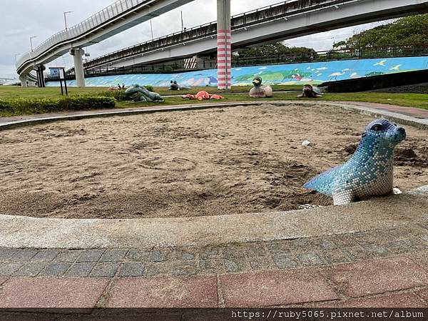 可愛的海洋生物會在旁邊看著孩子們玩沙~章魚、螃蟹、海龜、鴨子~