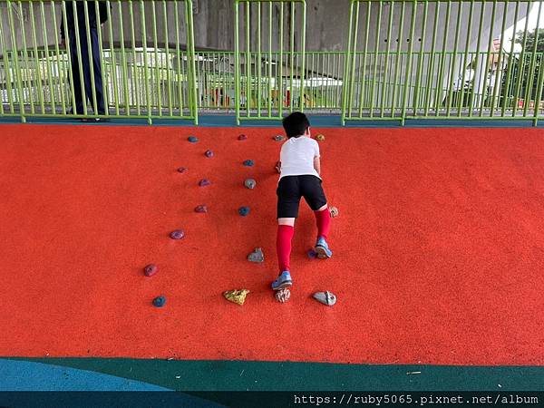 這裡很適合年紀較小的孩子練習攀爬,小可樂玩就剛剛好~不會太傾斜、不會太困難