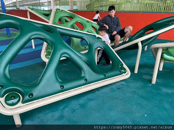 造型很特別,而且顏色很也很飽和好看~ 吸引孩子們在這區跑來跑去、爬上爬下的