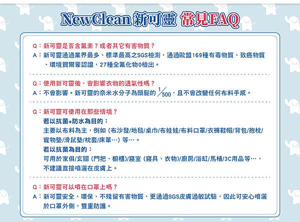 因為新可靈安全、環保、不殘留有害物質,更通過SGS皮膚刺激認證,因此可安心噴灑於口罩外側,雙重防護。