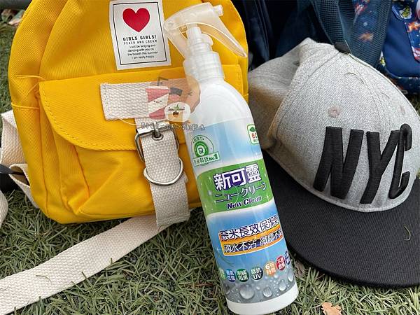像是用推車推孩子出門時,也可以在推車的遮陽罩上噴新可靈,減少UVA、UVB穿透,孩子推車使用了,媽媽的遮陽帽當然也不能少,噴上新可靈讓我安心不少,肌膚要顧好啊~~