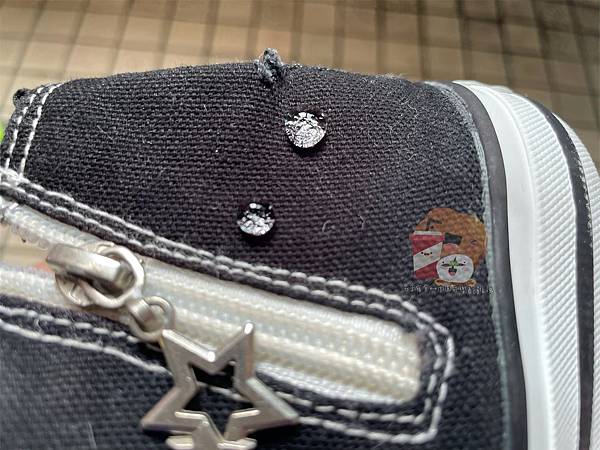 使用新可靈奈米長效保潔劑,將水滴於球鞋表面,會發現水不會被吸收,而是呈現水珠於表面滑落,