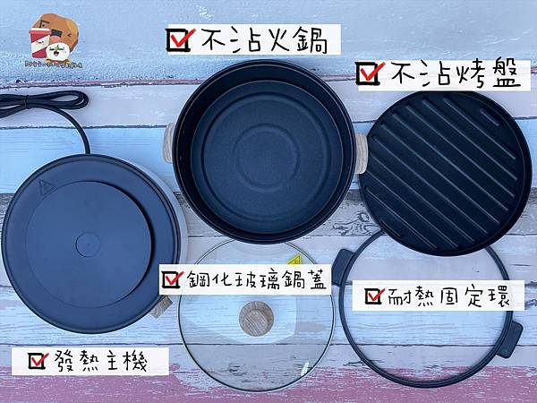 配件:發熱主機x1、耐熱固定環x1、不沾烤盤x1、不沾火鍋x1、鋼化玻璃鍋蓋x1、說明書x1
