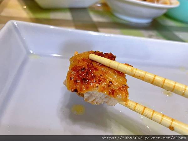 而且新鮮的花枝丸,塗上薄薄的醬汁就可以提升美味程度。