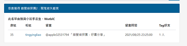 私底下聯絡沒問題喔~不要在板上tag 會讓得獎者失去資格