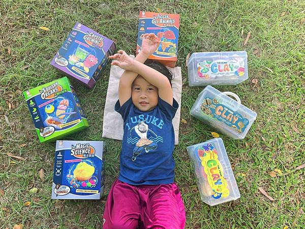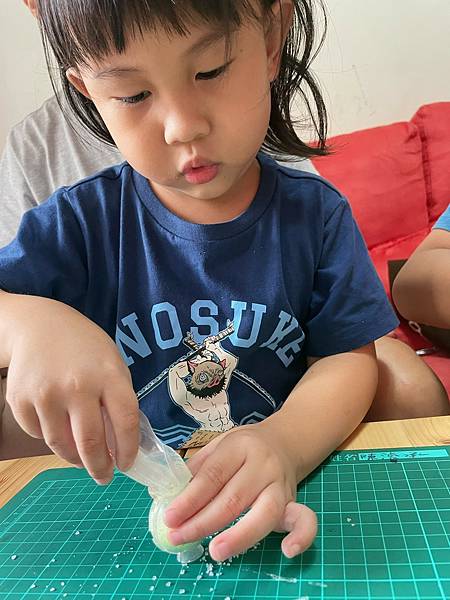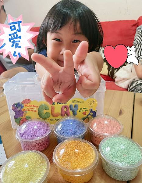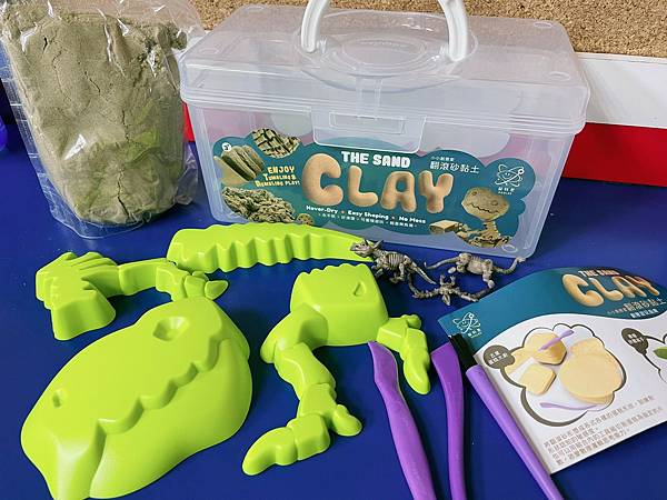 但我還是想給他們玩,不過我會在家墊一個塑膠墊,讓他們在上面玩,減少一些遺落看不到的黏土,但這款沙黏土其實不會掉的到處都是,還蠻容易整理的。